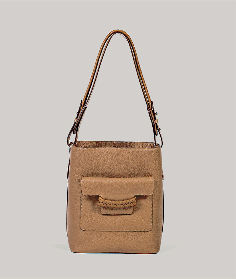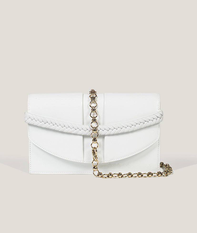 KNEED bags are created by a team of artisans, each with specialist skills. Our Olesya style takes over four hours of master craftsmanship, from hand weaving the braid through to careful construction of the bag.