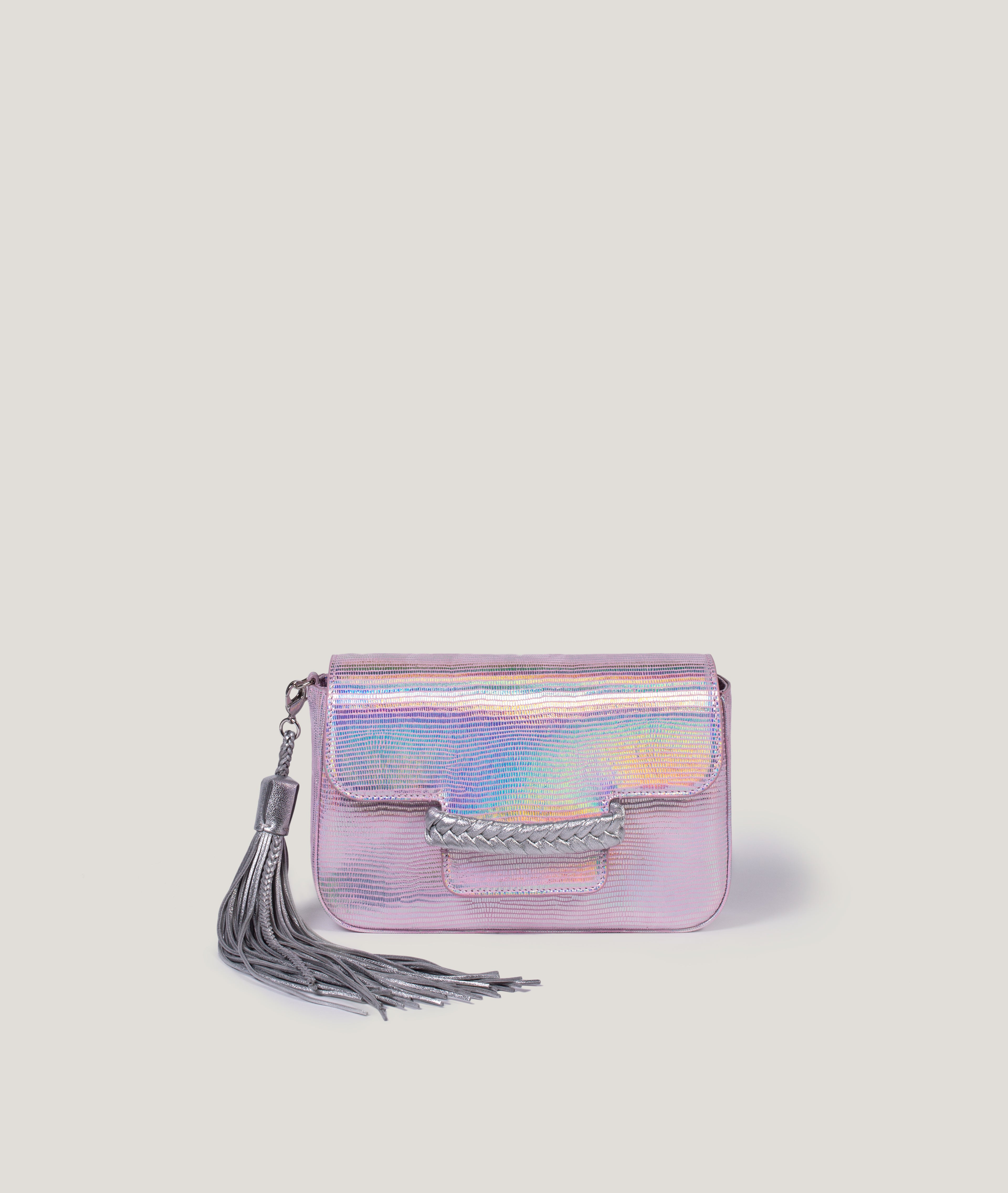 - Crinkle Patent, with an intone lambskin handwoven braid